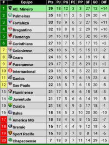 Terminó la Fecha 18 del Brasileirão 2021 y el torneo ya tiene campeón de la primera ronda: Atlético Mineiro. Palmeiras volvió a ganar después de tres derrotas al hilo y sigue muy de cerca al “Galo“. Fortaleza dejó puntos por el camino, mientras que Corinthians sigue acercándose a la cima y anunció un refuerzo de mucha jerarquía. Flamengo sigue dejando víctimas debido a su poderío ofensivo.
