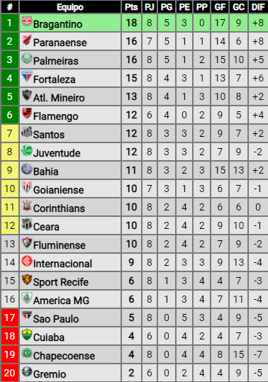 Terminó la octava fecha del Brasileirão 2021 y el Red Bull Bragantino sigue puntero en soledad, pero ahora con una ventaja más chica sobre Athletico Paranaense y Palmeiras. El Atlético Mineiro también sigue en la disputa tras volver a ganar debido a la inspirada noche de sus dos argentinos.