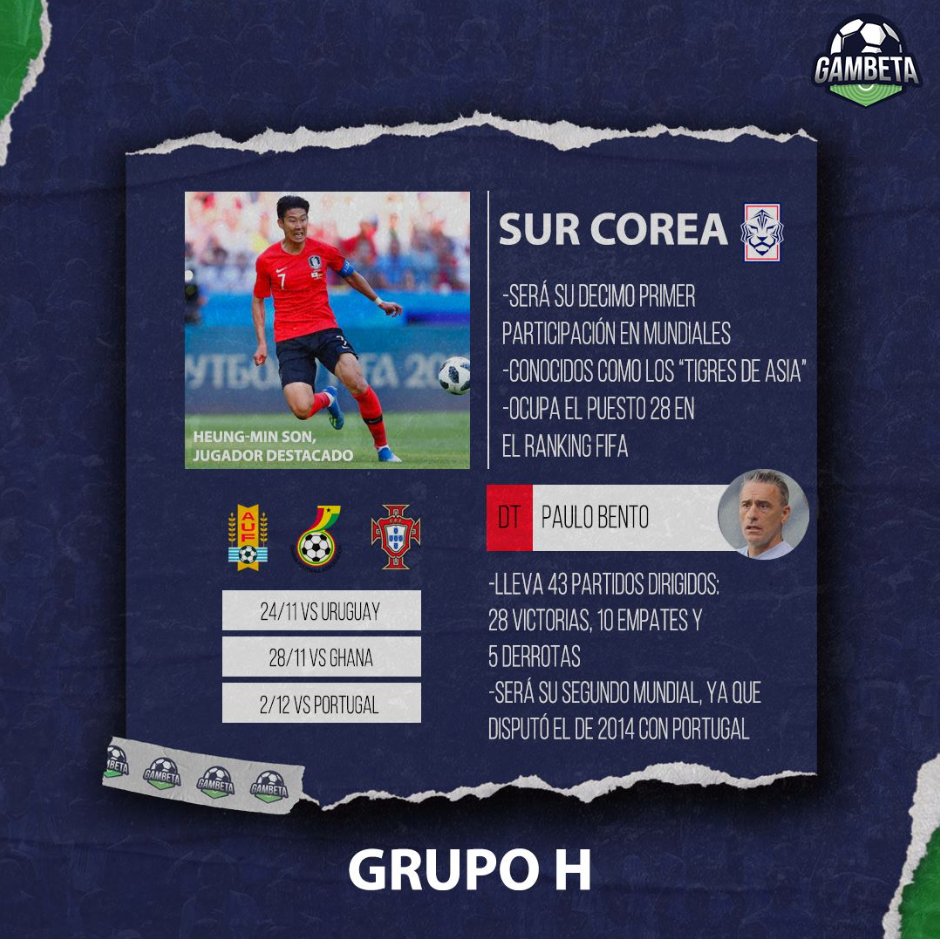 Teniendo en cuenta que en las últimas dos participaciones no pudo pasar de la Fase de Grupos, el objetivo principal de Corea del Sur será llegar a los Octavos de Final. Tendrá un trabajo difícil dado que en su grupo tiene rivales de jerarquía como Uruguay y Portugal. A priori, el conjunto asiático sabe que aspira al segundo lugar del Grupo H. Sin embargo, el rival que completa el grupo es el siempre difícil conjunto africano de Ghana.