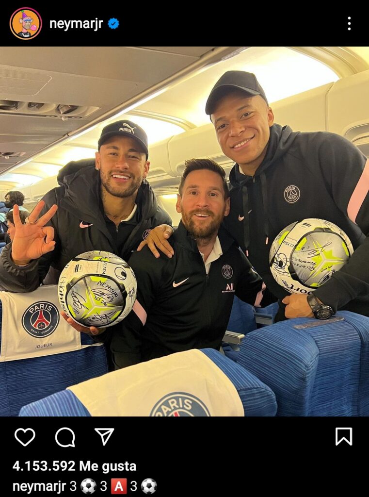 Pero la victoria no solo se sintió en las canchas, sino también en las redes sociales. Este es el caso de Neymar, donde el brasilero público una foto en su cuenta de Instagram junto al trío en el avión y, además, escribió un 3 acompañado de un emoji de una pelota, otro 3 con una A de asistencia y finalmente, otro 3 con otra pelota al lado. Haciendo de una manera u otra, una referencia a la gran noche que tuvieron los 3 en el partido.