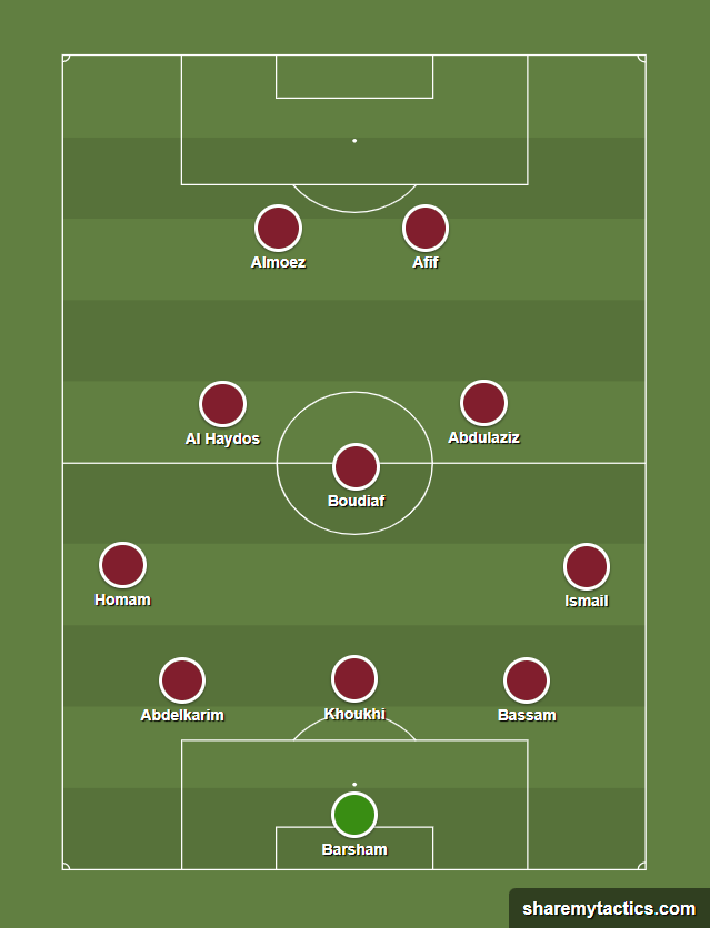 El mejor jugador de esta selección es en primer lugar Akram Afif, la gran joya de 25 años que juega de extremo, es un futbolista con mucho talento y en velocidad puede ser preocupante para el resto de los equipos. A este velocista lo acompaña Almoez Ali, quien juega de centrodelantero buscando encontrar el espacio entre los defensas para aprovechar la virtud de su compañero.
